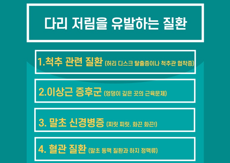 이상 왼쪽 다리저림을 일으킬수 있는 4가지 질환에 대해서 알아보았습니다.